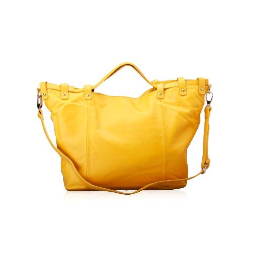 - Yellow leather shopper bag with silver toned hardware