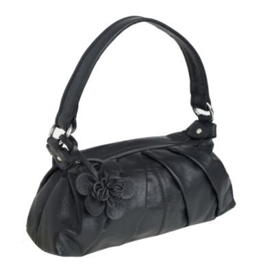 This black leather bag from Debenhams Collection features pleat detail to the front and a flower charn to the handle.